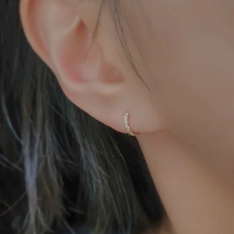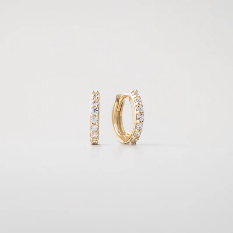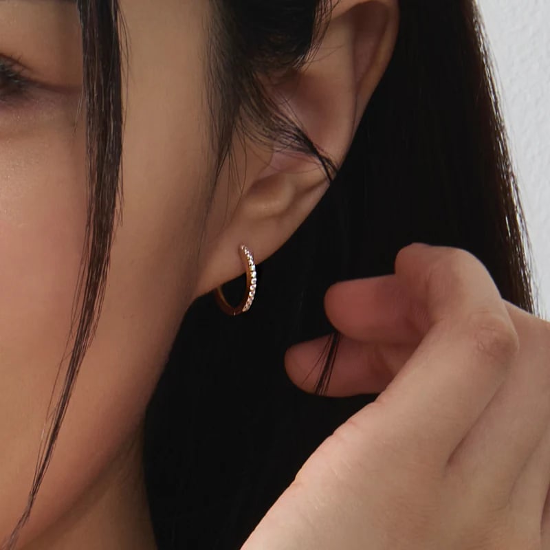 ストーンが埋められたワンタッチタイプのフープピアスです。 他のピアスとレイヤードするのもおすすめです。